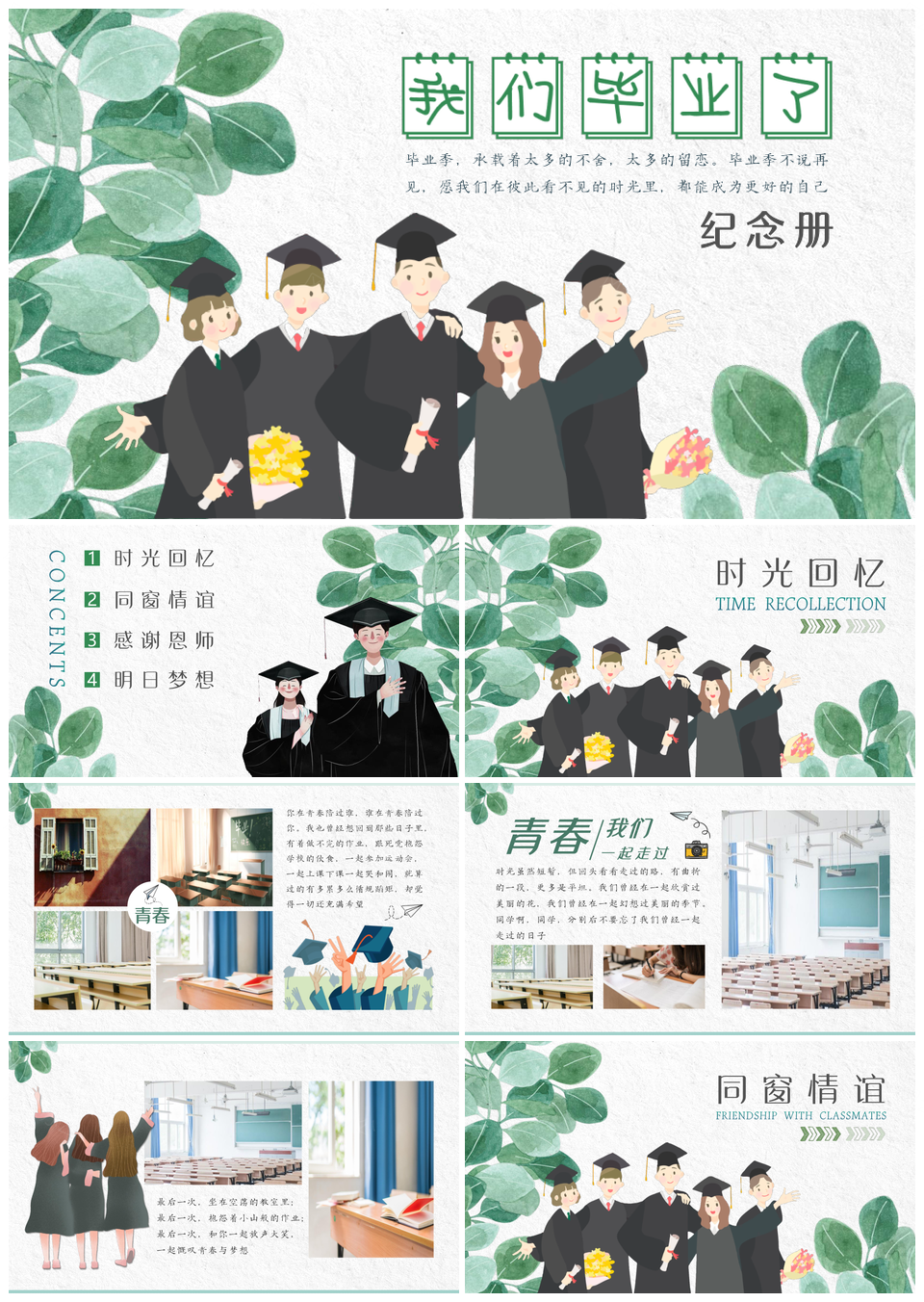 这是一张绿色青春校园毕业季班级聚会纪念相册PPT模板,包含绿色、青春、校园、毕业季、班级、聚会、纪念相册等主题内容,也可用作绿色青春校园毕业季、绿色青春校园相册、青春校园毕业季班级、校园毕业季班级聚会、毕业季班级聚会纪念、班级聚会纪念相册、绿色青春校园、青春校园毕业季、校园毕业季班级、毕业季班级聚会、班级聚会纪念、聚会纪念相册、绿色青春、绿色校园、青春校园、校园毕业季、毕业季班级、班级聚会、聚会纪念、纪念相册等PPT场景使用。