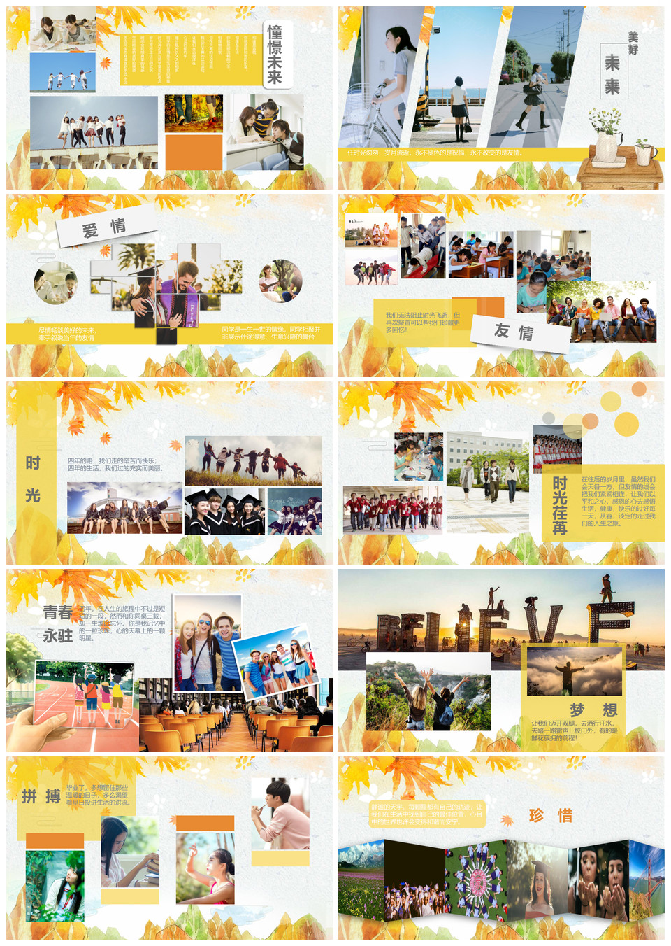 这是一张毕业季再见青春纪念册PPT模板,包含毕业季、再见、青春、纪念册等主题内容,也可用作毕业季、再见、青春、纪念册