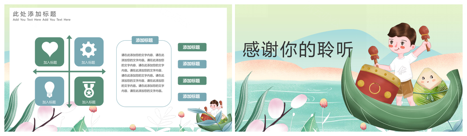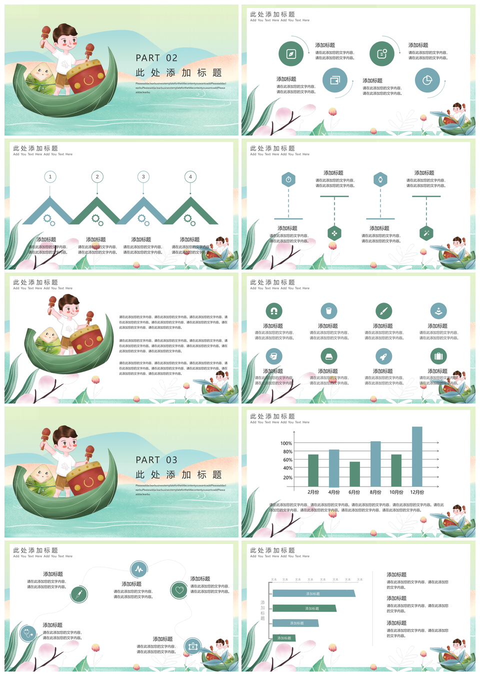 这是一张绿色清新端午节PPT模板,包含绿色、清新、端午节等主题内容,也可用作绿色清新端午节、绿色清新、绿色端午节、清新端午节等PPT场景使用。