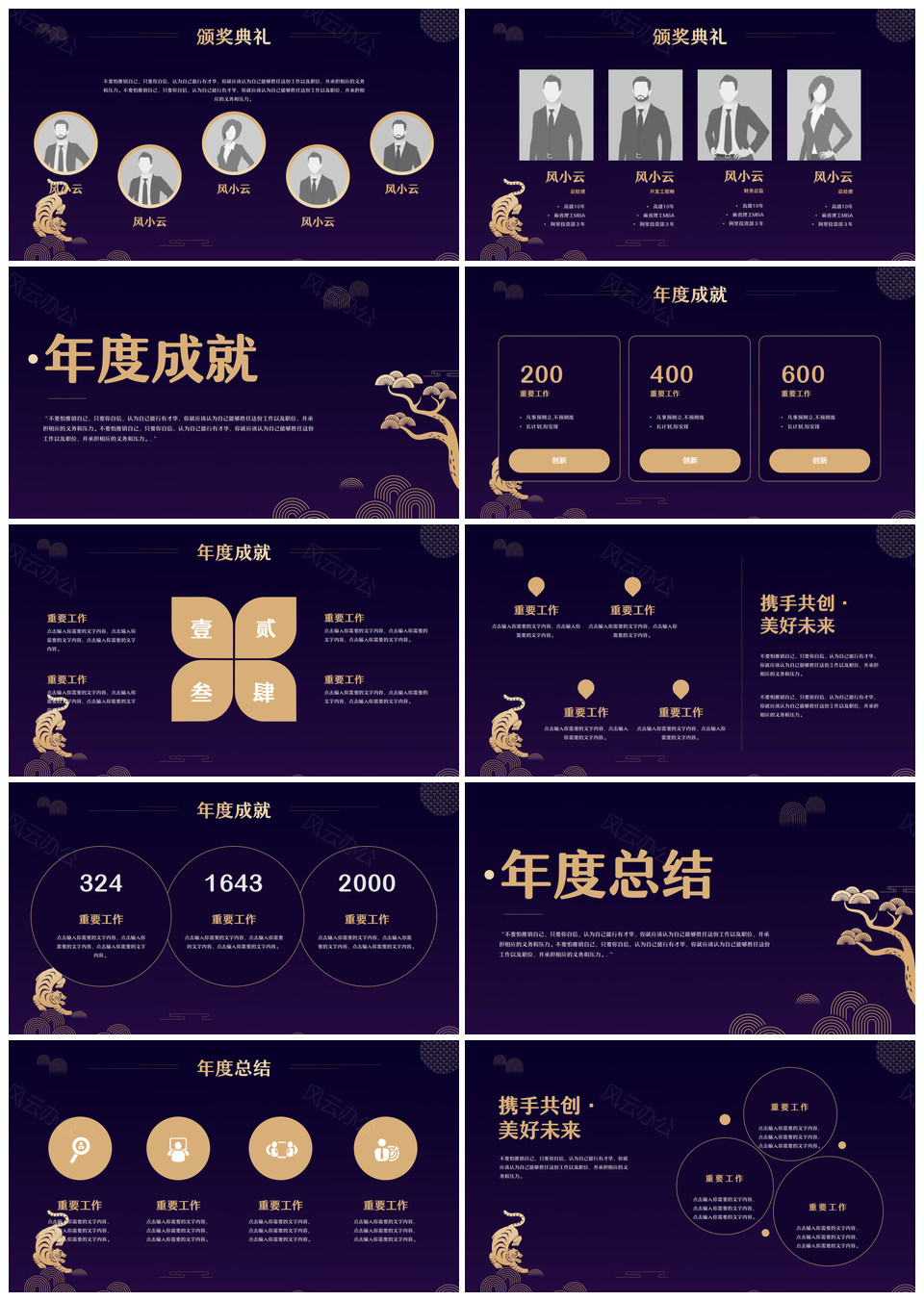 本站提供的蓝色大气中国风虎年企业年会颁奖典礼PPT模板,下载格式为pptx,一共19页,作品中文字及图均可以修改和编辑,图片更改请在作品中右键图片并更换,文字修改请直接点击文字进行修改。