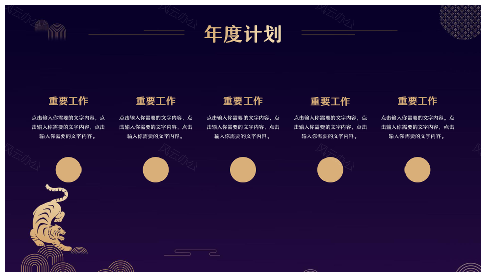 这是一张蓝色大气中国风虎年企业年会颁奖典礼PPT模板,包含蓝色、大气、中国风、虎年、企业年会、颁奖典礼等主题内容,也可用作蓝色大气中国风虎年、中国风虎年企业年会颁奖典礼、蓝色大气中国风、大气中国风虎年、中国风虎年企业年会、虎年企业年会颁奖典礼、蓝色大气、大气中国风、中国风虎年、虎年企业年会、企业年会颁奖典礼等PPT场景使用。