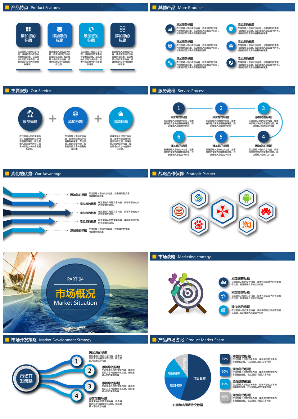 本站提供的蓝色商务企业公司宣传介绍通用PPT模板,下载格式为pptx,一共67页,作品中文字及图均可以修改和编辑,图片更改请在作品中右键图片并更换,文字修改请直接点击文字进行修改。