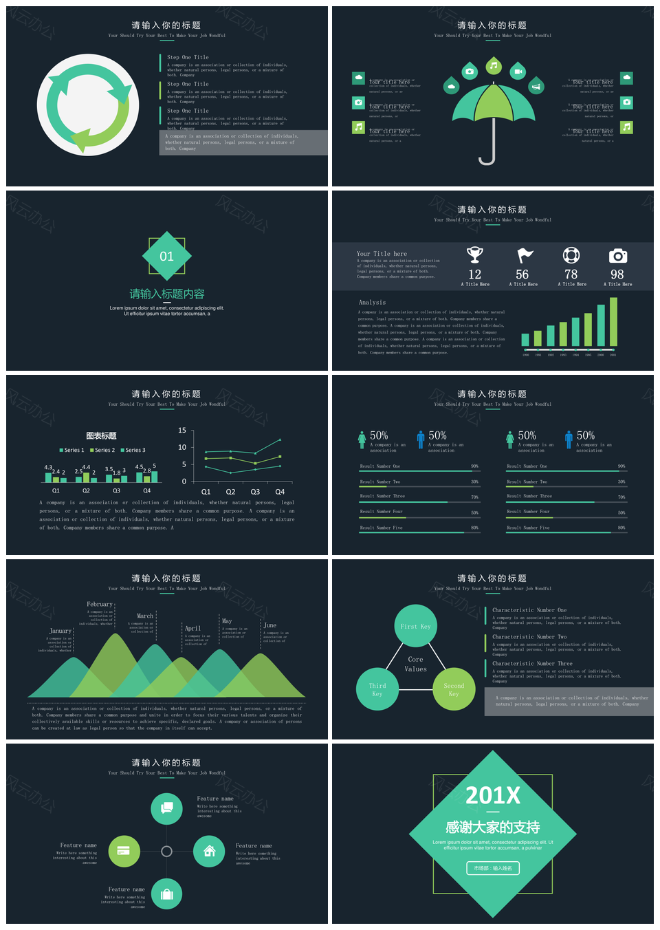 本站提供的绿色扁平化小清新通用商务总结PPT模板,下载格式为pptx,一共50页,作品中文字及图均可以修改和编辑,图片更改请在作品中右键图片并更换,文字修改请直接点击文字进行修改。