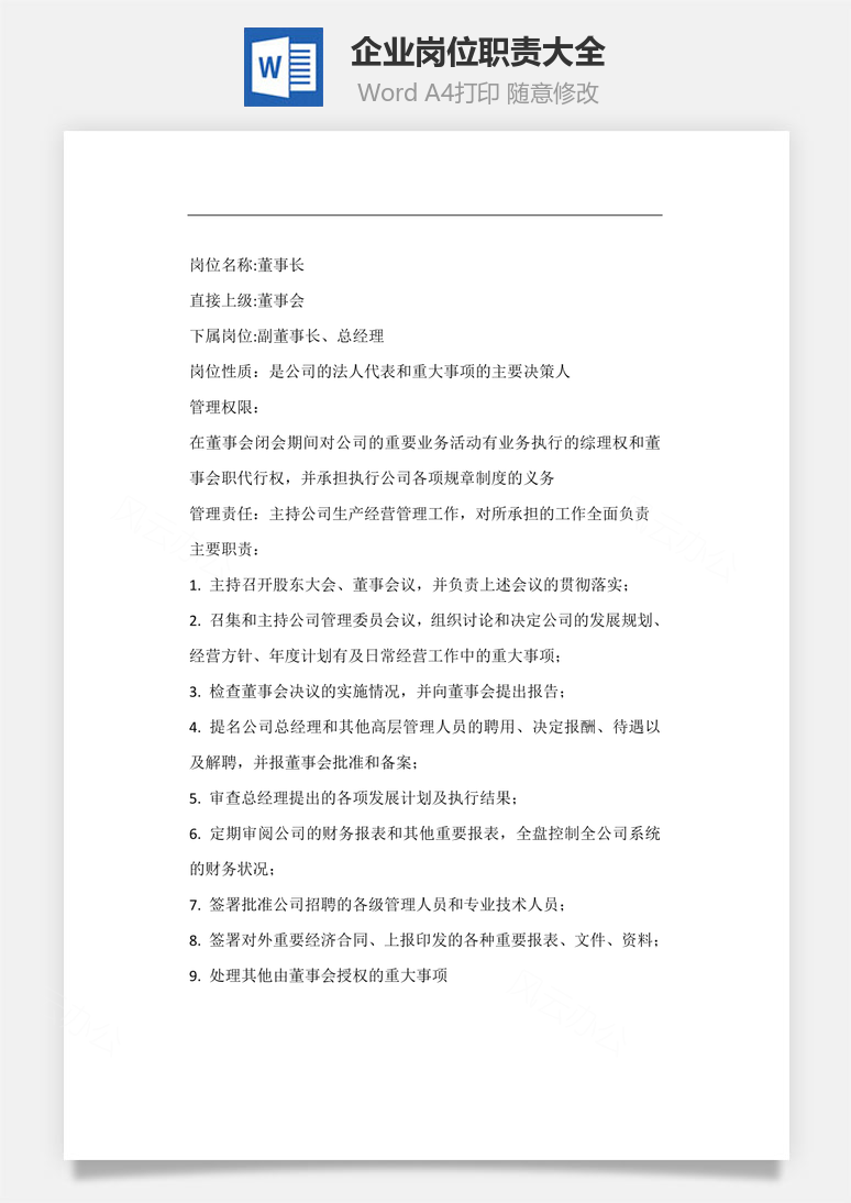 当前位置:首页>Word模板>企业管理>企业岗位职责大全Word模板 企业岗位职责大全Word模板 企业管理 25年5月7日 编辑 前往下载 admin 取消关注 关注 私信 本站提供企业岗位职责大全Word模板下载,格式为 word,一共1页,作品中文字及图均可以修改和编辑,图片更改请在作品中右键图片并更换,文字修改请直接点击文字进行修改。更多精彩人力资源Word模板,尽在本站。 下载权限查看 ¥ 免费下载 评论并刷新后下载 登录后下载 查看演示 {{attr.name}}: 您当前的等级为 登录后免费下载登录 小黑屋反思中,不准下载! 评论后刷新页面下载评论 支付¥以后下载 请先登录 您今天的下载次数(次)用完了,请明天再来 支付积分以后下载立即支付 支付以后下载立即支付 您当前的用户组不允许下载升级会员 您已获得下载权限 您可以每天下载资源次,今日剩余次 相关文章: 职能企业岗位职责大全Word模板 公司岗位职责大全Word模板 公司各部门岗位职责Word模板 岗位说明书大全Word模板 版权声明 站内部分内容由互联网用户自发贡献,该文观点仅代表作者本人。本站仅提供网络资源分享服务,不拥有所有权,不承担相关法律责任。如发现本站有涉嫌抄袭侵权/违法违规的内容, 请 联系我们 一经核实,立即删除。并对发布账号进行永久封禁处理。在为用户提供最好的产品同时,保证优秀的服务质量。 本站仅提供信息存储空间,不拥有所有权,不承担相关法律责任。 给TA打赏 共{{data.count}}人 人已打赏 企业大全岗位职责