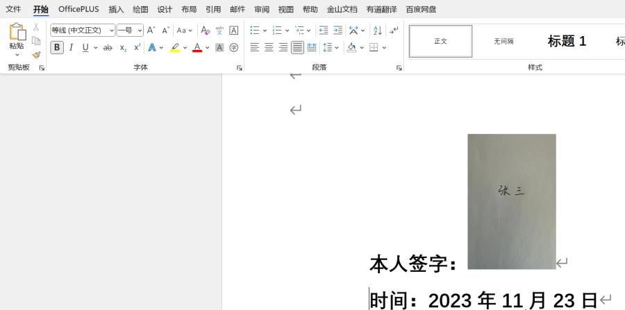 1、定位插入位置:打开需要添加电子签名的 Word 文档,将光标定位到需要插入签名的位置。