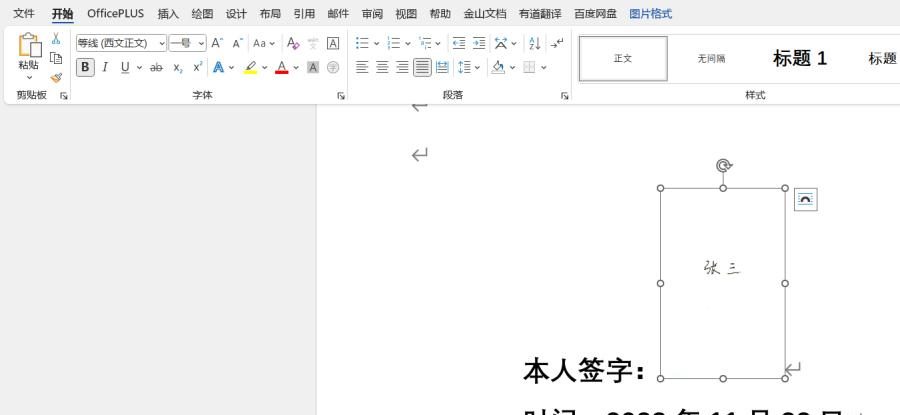 5、缩放图片尺寸:按住 Shift 键,拖动图片边角,便能对签名图片进行等比例放大或缩小,确保签名大小与文档整体排版协调。