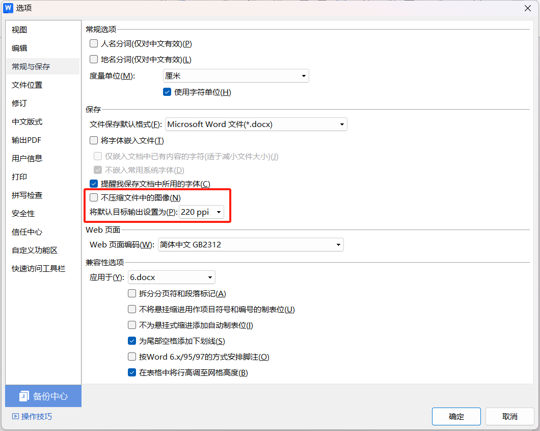- 在「常规与保存」的设置区域中,仔细查找并勾选「不压缩文件中的图像」这一选项。勾选后,文档在保存时会默认保留图片的原始数据,不再进行自动压缩处理,从而保证图片的清晰度。