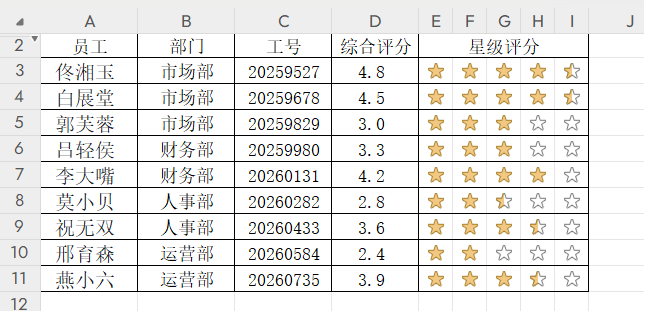 通过上述步骤,就能快速完成Excel五星评分制作。整个过程借助函数公式精准计算、条件格式呈现图标,再搭配简单的美化操作,就能让评分数据以直观的五星形式展示。掌握这种Excel五星评分制作方法,无论是用于统计产品评价,还是整理服务评分,都能让数据呈现更清晰易懂。