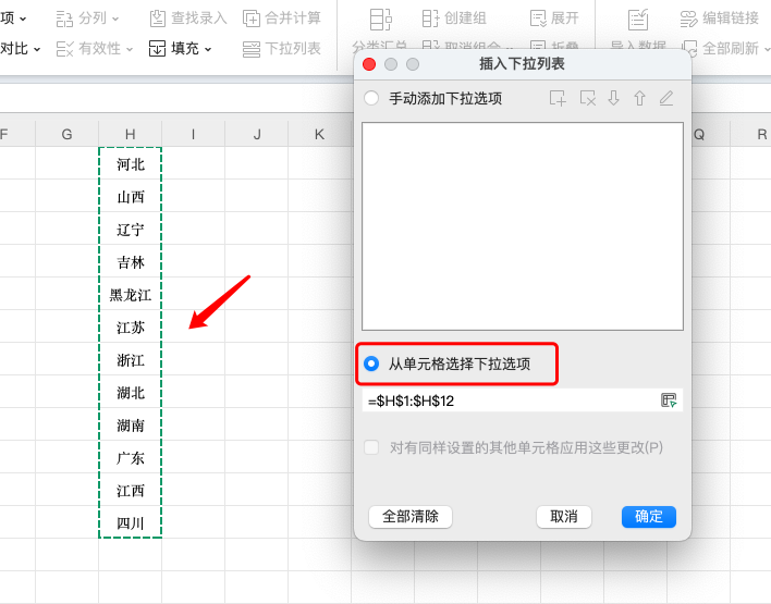 =$H:$H),否则下拉中会包含空白项; -
