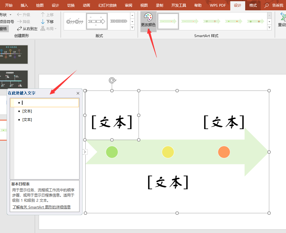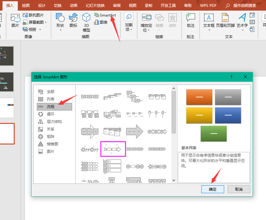 - 开始点击插入SmartArt图型——流程——基本日程表——点击确定即可