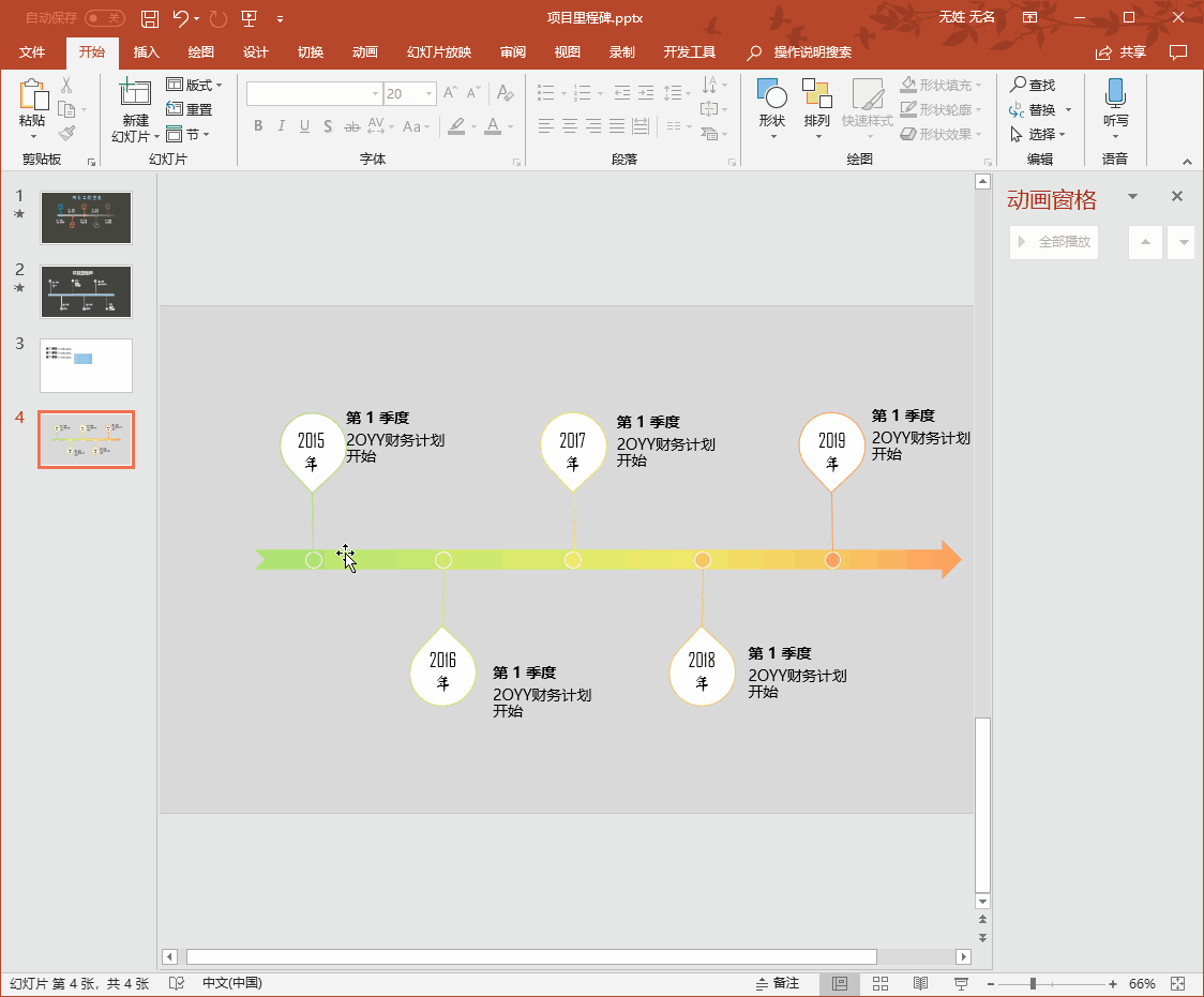有时候我们在做公司年终总结的时候需要阐述大事件,在ppt制作动态的大事流程图,比如就像下面的这个项目工程进度图: