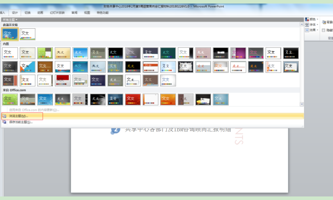 当前位置:首页>PPT学堂>PPT教程>如何使用office快速替换PPT模板 如何使用office快速替换PPT模板 PPT教程 24年7月22日 编辑 admin 取消关注 关注 私信 直接替换PPT模板-office打开PPT模板,右击鼠标,点击设置背景格式,选择全部应用。 2.点击设计-主题下拉框-保存模板3.打开需要替换模板的PPT,点击设计-主题下拉框-浏览主题,找到当时保存的模板,点击应用。大家还有什么好的方法可以给小编留言呦。 直接替换PPT模板-office 打开PPT模板,右击鼠标,点击设置背景格式,选择全部应用。 2.点击设计-主题下拉框-保存模板 3.打开需要替换模板的PPT,点击设计-主题下拉框-浏览主题,找到当时保存的模板,点击应用。 大家还有什么好的方法可以给小编留言呦。 相关文章: PPT中怎么设计演示文稿中图片的百叶窗功能? ppt蒙版的应用,ppt蒙版的使用方法 在PPT中构建粉笔字效果,简便且美观,视觉美感大幅提升 ppt制作环绕文字的技巧教程 版权声明 站内部分内容由互联网用户自发贡献,该文观点仅代表作者本人。本站仅提供网络资源分享服务,不拥有所有权,不承担相关法律责任。如发现本站有涉嫌抄袭侵权/违法违规的内容, 请 联系我们 一经核实,立即删除。并对发布账号进行永久封禁处理。在为用户提供最好的产品同时,保证优秀的服务质量。 本站仅提供信息存储空间,不拥有所有权,不承担相关法律责任。 给TA打赏 共{{data.count}}人 人已打赏